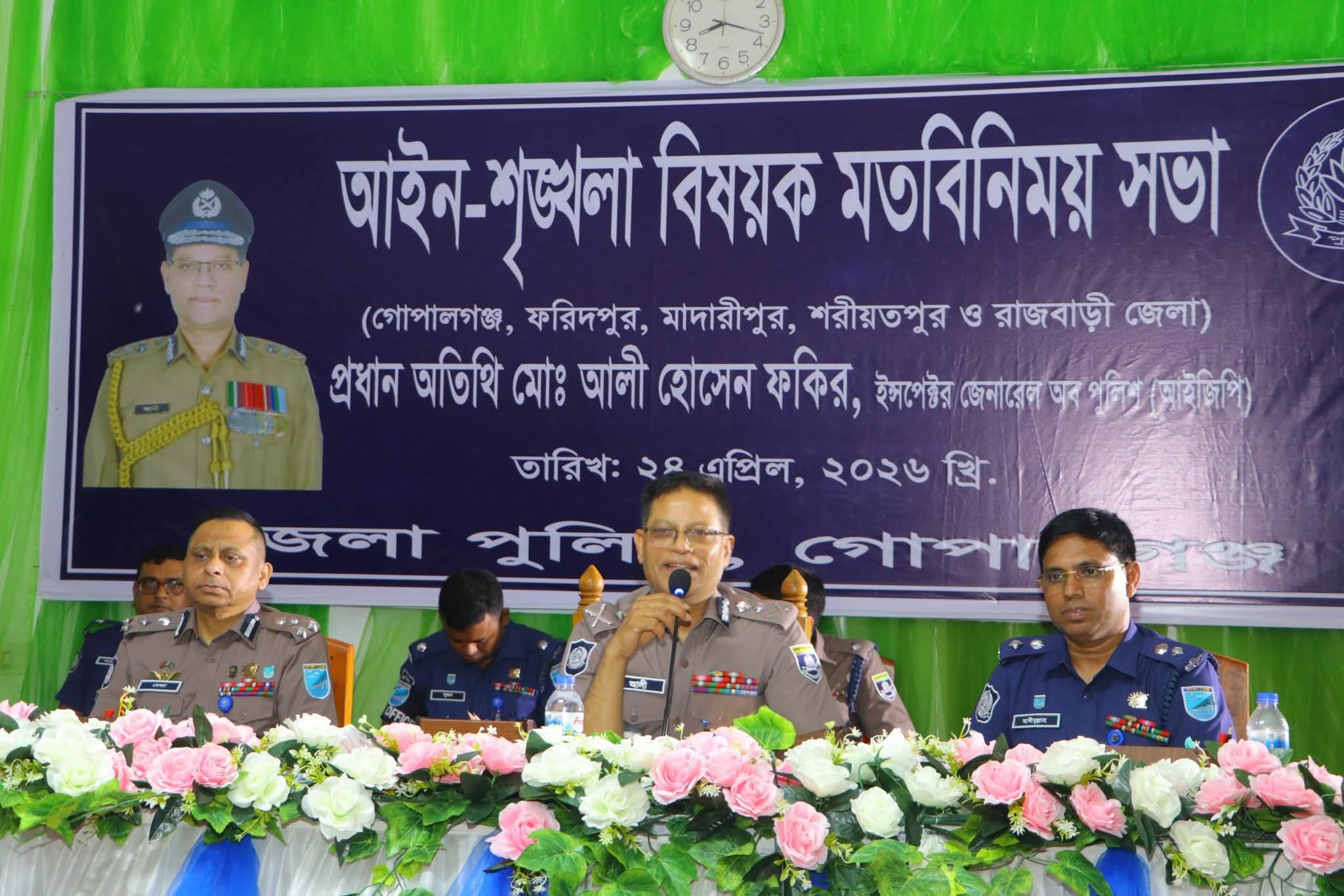 বাংলাদেশ পুলিশের ইন্সপেক্টর জেনারেল (আইজিপি) মোঃ আলী হোসেন ফকির আইন-শৃঙ্খলা পরিস্থিতি পর্যালোচনা ও মতবিনিময় সভায় অংশ নিতে শুক্রবার (২৪ এপ্রিল) গোপালগঞ্জ সফর করেন।