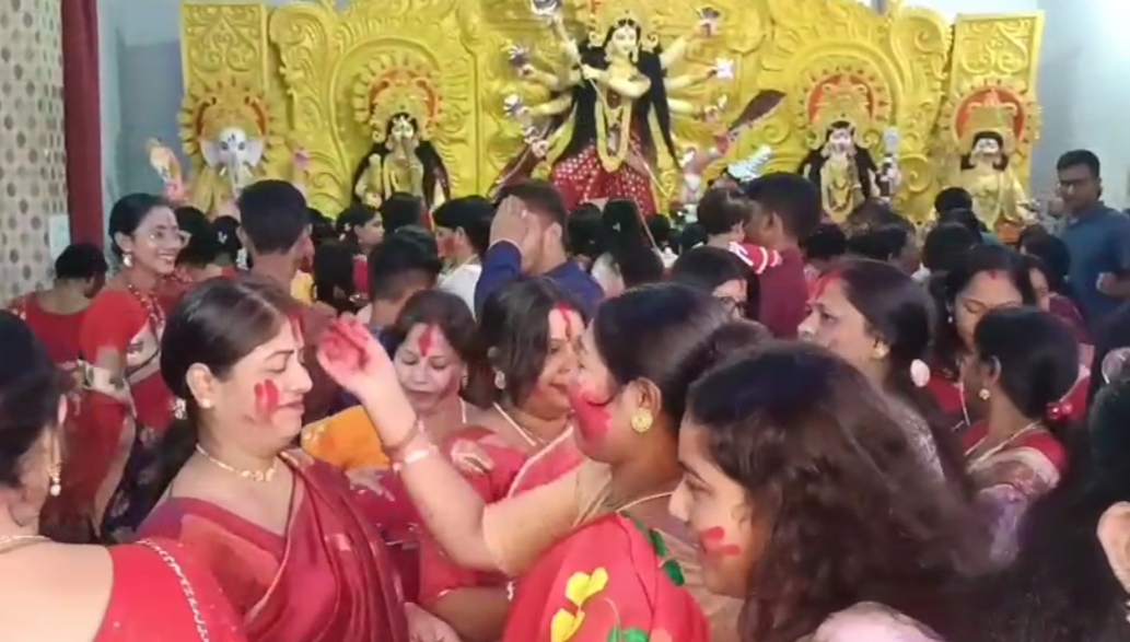 গোপালগঞ্জ প্রতিনিধি: গোপালগঞ্জের শারদীয় দুর্গাপূজা উপলক্ষে সিঁদুর খেলায় মেতেছেন সনাতন ধর্মাবলম্বীরা।