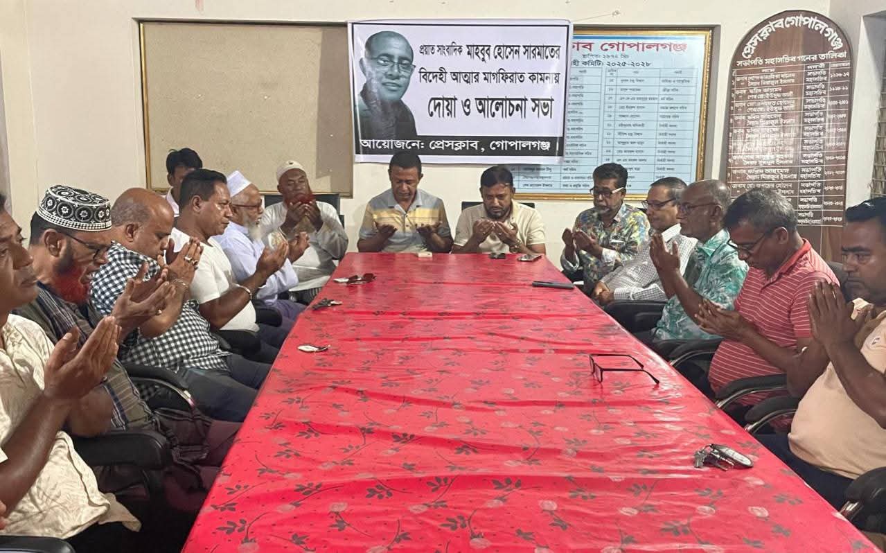 প্রেসক্লাব গোপালগঞ্জে সাংবাদিক মাহবুব হোসেন সারমাতের আত্মার মাগফিরাত কামনায় দোয়া ও আলোচনা সভা