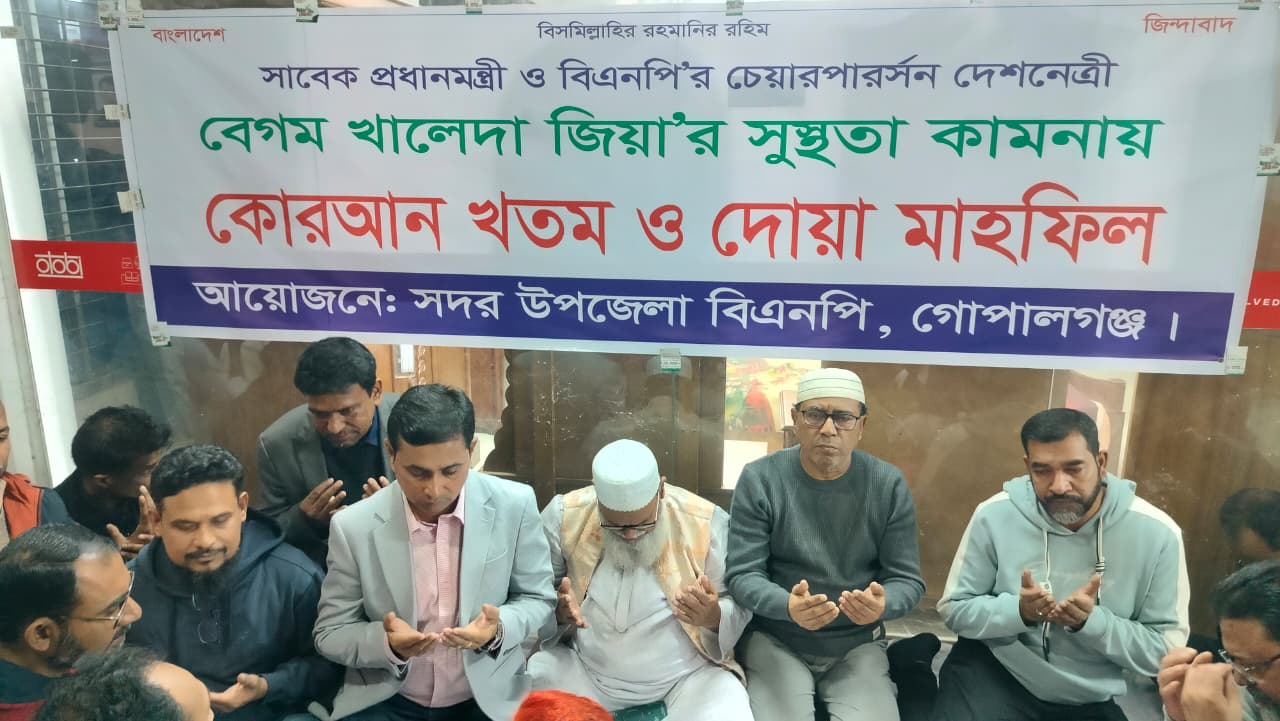 গোপালগঞ্জ সদর উপজেলা বিএনপি এর আয়োজনে প্রথমে পবিত্র কোরআন খতম অনুষ্ঠিত হয়। পরে গোপালগঞ্জ শহরের পাচুরিয়ায় অবস্থিত সদর উপজেলা বিএনপি কার্যালয়ে মিলাদ ও দোয়া মাহফিল অনুষ্ঠিত হয়।