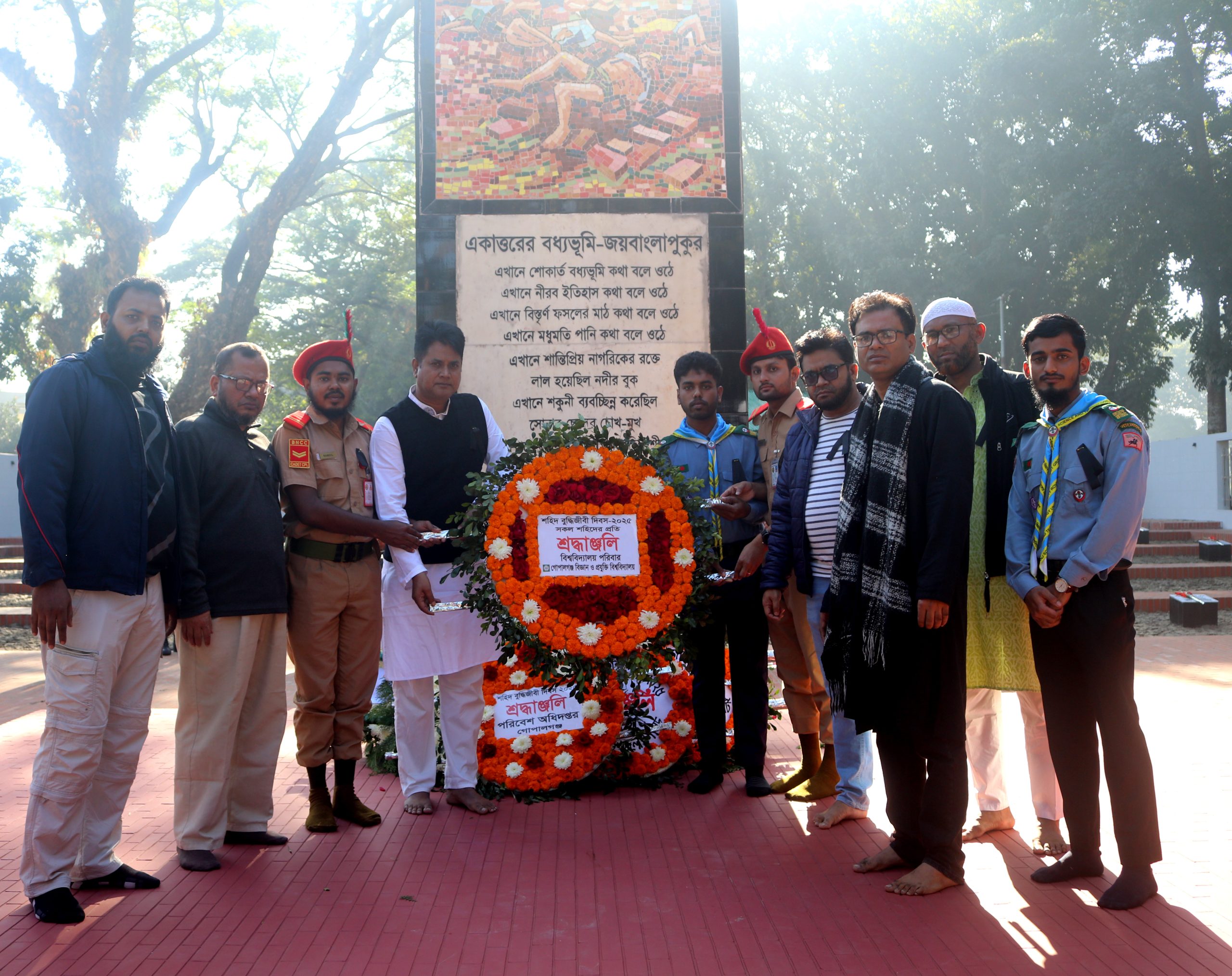 গোবিপ্রবি, প্রতিনিধি: গোপালগঞ্জ বিজ্ঞান ও প্রযুক্তি বিশ্ববিদ্যালয়ে (গোবিপ্রবি) যথাযোগ্য মর্যাদায় শহিদ বুদ্ধিজীবী দিবস-২০২৫ পালন করা হয়েছে। দিবসটি উপলক্ষে আজ শনিবার (১৪ ডিসেম্বর ২০২৫) শ্রদ্ধাঞ্জলি নিবেদন, মোমবাতি প্রজ্জ্বলন, দোআ মাহফিল ও বিশেষ প্রার্থনার আয়োজন করা হয়।