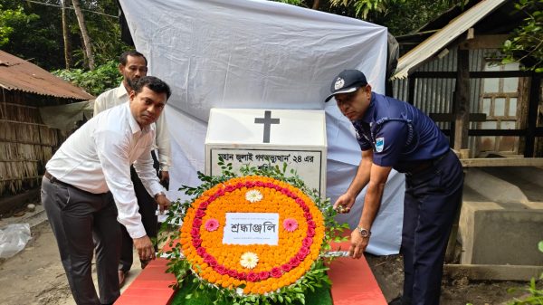প্রতিনিধি কোটালীপাড়া: বৈষম্য বিরোধী ছাত্র আন্দোলনের শহীদ রথীন বিশ্বাসের সমাধিতে কোটালীপাড়া উপজেলা প্রশাসন, পুলিশ প্রশাসন, উপজেলা বিএনপি, পৌর বিএনপির নেতাকর্মী ও বৈষম্যবিরোধেী ছাত্র আন্দোলনে আহত শিক্ষার্থীরা পুষ্পস্তবক অর্পণ করেছে। মঙ্গলবার