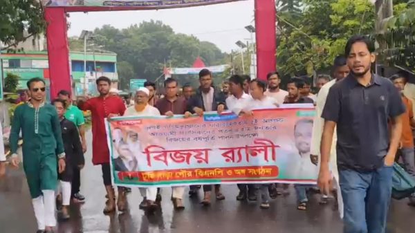 টুঙ্গিপাড়া প্রতিনিধি: গোপালগঞ্জের টুঙ্গিপাড়ায় বাংলাদেশ জাতীয়তাবাদী দল (বিএনপি) ও অঙ্গ সংগঠন টুঙ্গিপাড়া পৌর শাখার উদ্যোগে বর্ণাঢ্য বিজয় র্যালি অনুষ্ঠিত হয়েছে। জুলাই মাসের গণঅভ্যুত্থানের ধারাবাহিকতায় এই আগস্ট মাসে আওয়ামী ফ্যাসিবাদের পতন এবং